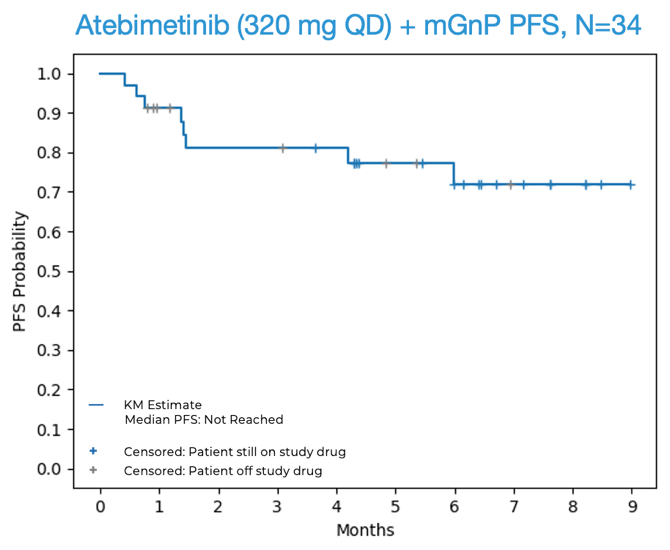 OS and PFS for Atebimetinib (320 mg QD) + mGnP (N=34, Intent-to-Treat Population)